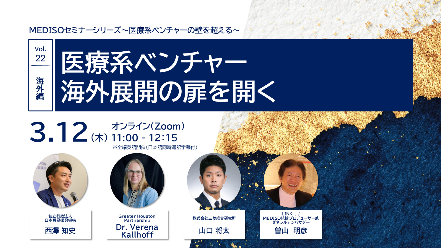 博士(生命科学)。コンサルティング会社ドリームインキュベータにて、産学連携、技術系スタートアップ(バイオ、半導体、環境エネルギーなど)の事業支援、大企業の新規事業開発、官公庁大型プロジェクトを担当。米アボット社日本法人およびシンガポール法人で勤務。診断薬・機器、医薬品(ウィメンズヘルス)のプロダクトマーケティング及び、医療ITのアジアパシフィックのエリアマーケティングを担当。医療機器インキュベータ サナメディでは、事業開発部長として、新規医療機器の事業化相談、医療機器の薬事申請・上市、またスタートアップへの投資と支援を行ってきた。MEDISOのほかに、AMEDの評価委員、NEDOや大学のアクセラレータプログラムのメンターも勤める。現在は独立し、広島大学産学連携部バイオデザイン部門 特命准教授や、Medical Excellence JAPAN(MEJ)のシニア戦略アドバイザーを務めている。