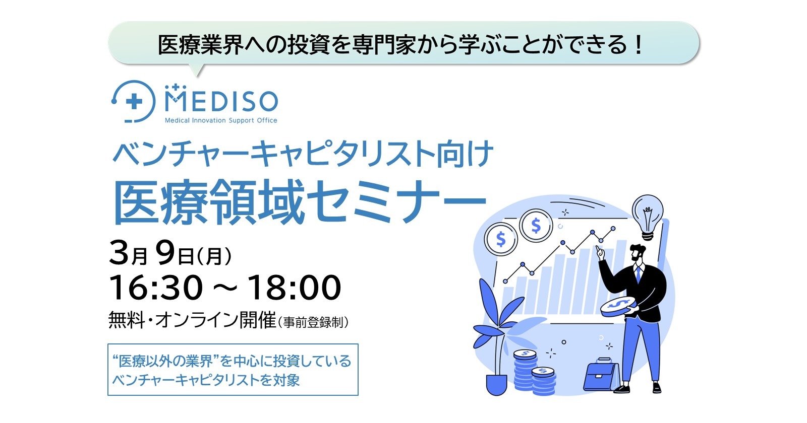 当サイトは、厚生労働省委託「医療系ベンチャー・トータルサポート事業」の一環として、厚生労働省医政局経済課の指示に基づき、受託者である株式会社三菱総合研究所が運営しております。